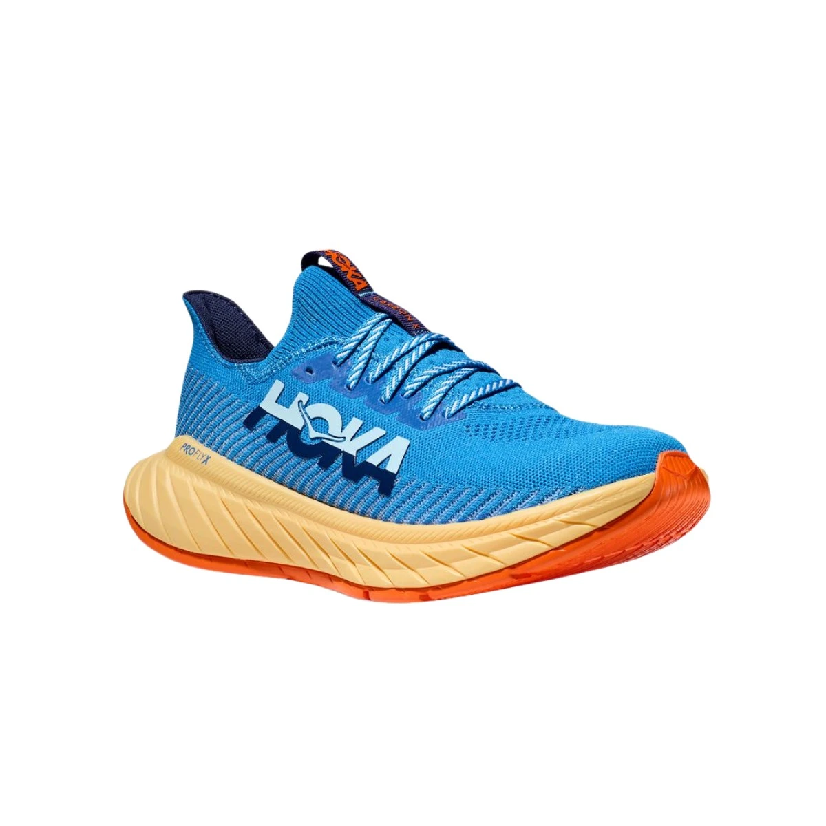 Carbon X 3 incluye una base amortiguadora de bajo perfil que mantiene el pie más cerca del suelo y utiliza un material más firme, diseñado para proporcionar un impulso eficiente.