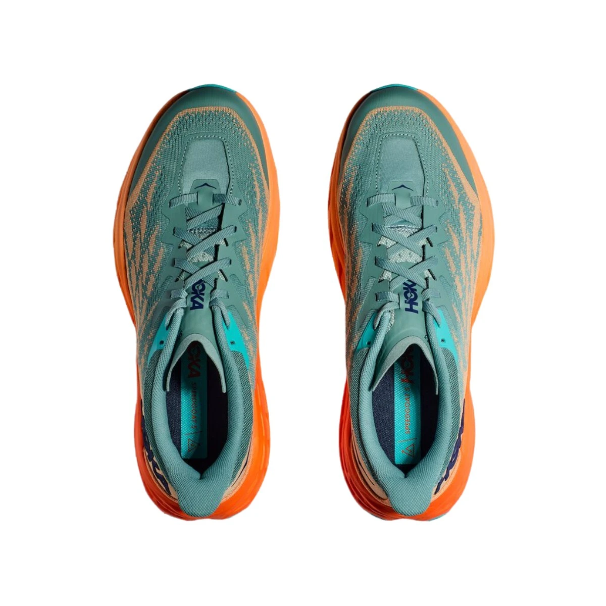 Un componente textil dinámico, que envuelve el dedo del pie y el antepié, brinda una flexibilidad y comodidad excepcionales durante el arranque, además de acomodar un posible hinchamiento del pie, una característica que ya estaba disponible en las Mafate Speed 3, las Evo Mafate 2 y las Evo Speedgoat. La mejora de la lengüeta contribuye a aumentar la sensación de comodidad en la parte superior del pie, junto al tobillo, donde puede haber fricción.
